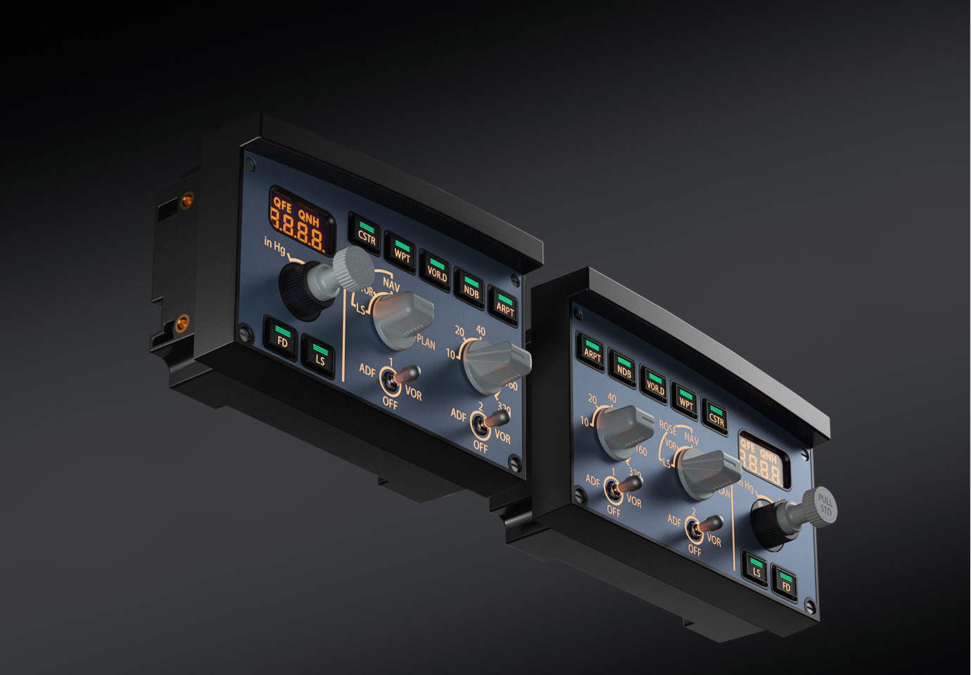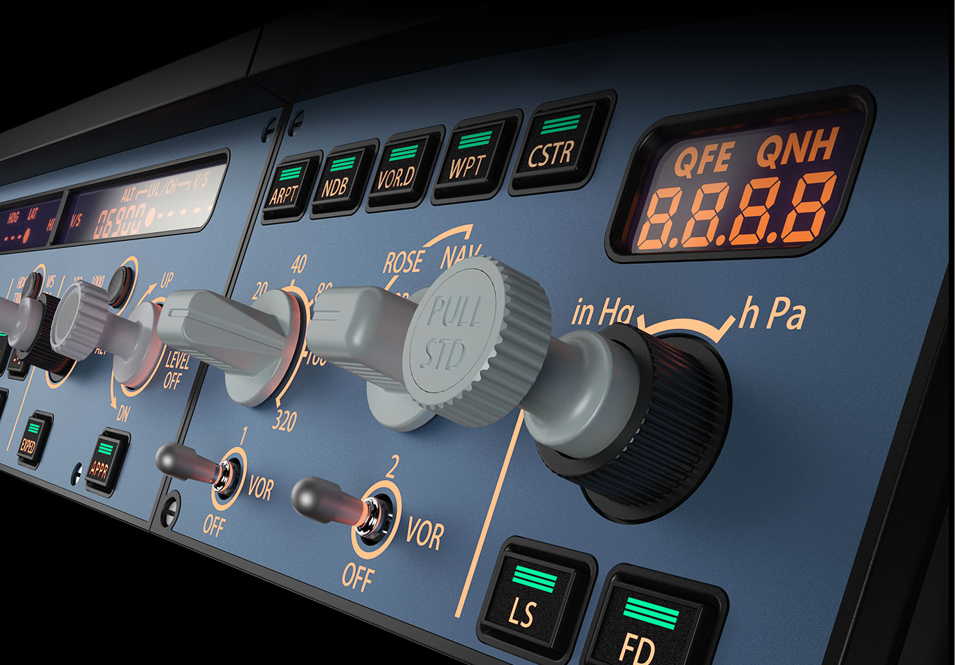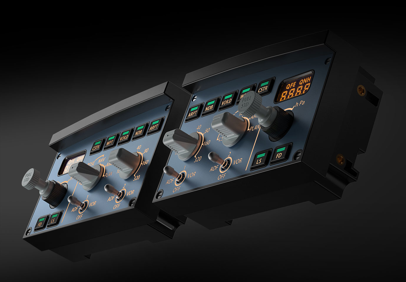 Перемикачі ADF-VOR Select: повністю металеві перемикачі зі спеціальними металевими ковпачками, що включають механізми обмеження підйому для реалістичних рухів.