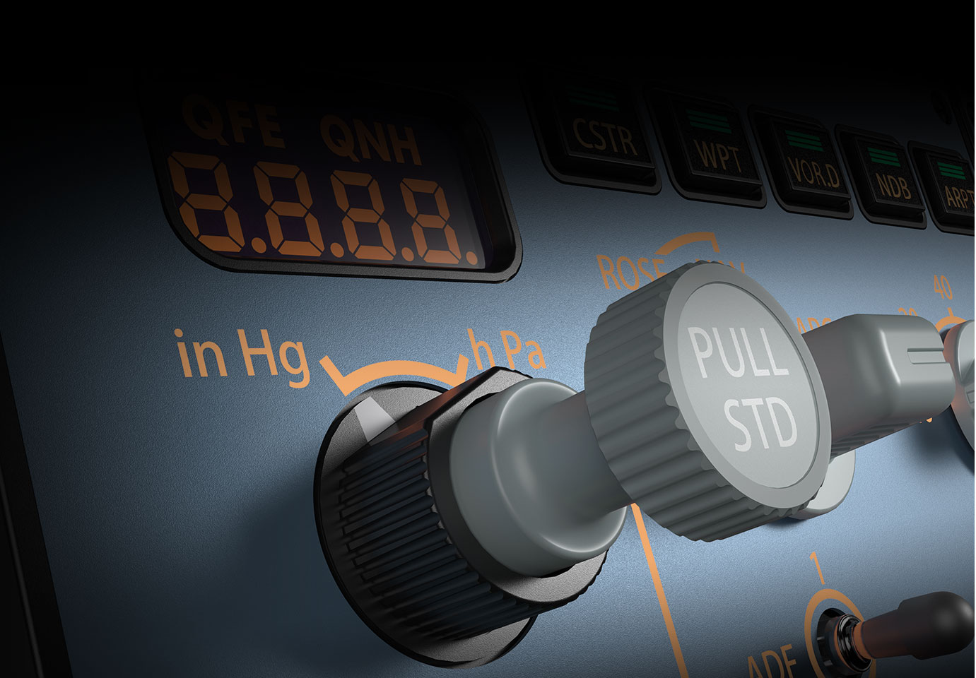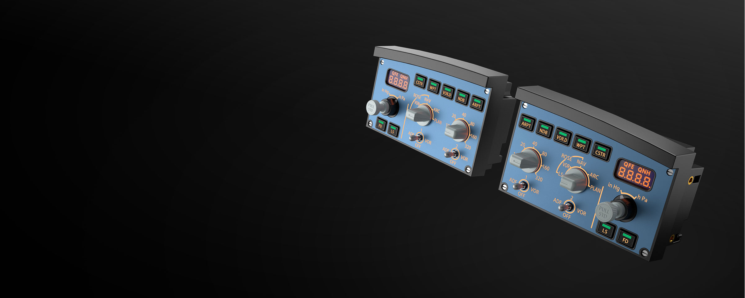 Високоточні енкодери комерційного класу: забезпечують автентичний зворотний зв'язок і підвищену довговічність; функція двотактного перемикання та селектор HPa/InHg: оснащені датчиками Холла; унікальна модель прискорення енкодера: забезпечує найточніший обертовий вхід, що адаптується до різних модулів літака.